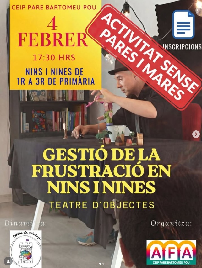 TALLER: GESTIÓ EMOCIONAL DE LA FRUSTRACIÓ A TRAVÉS DEL TEATRE D'OBJECTES