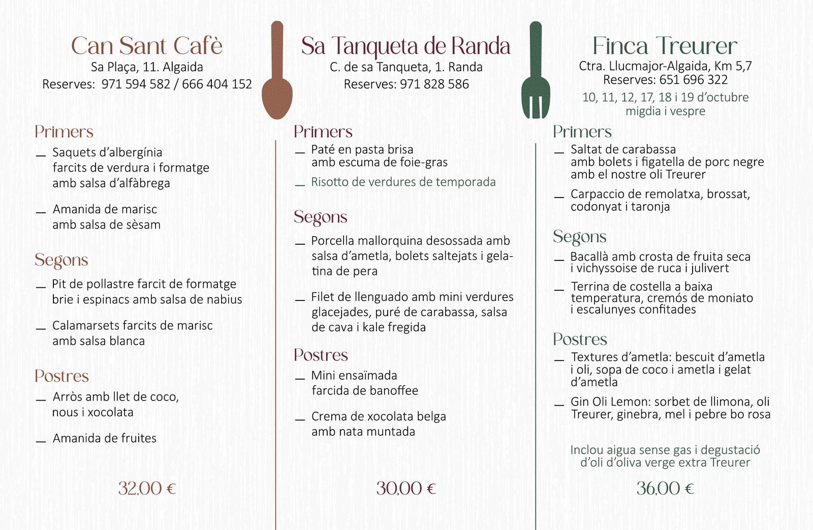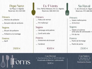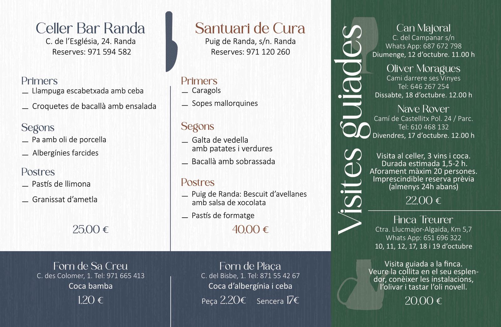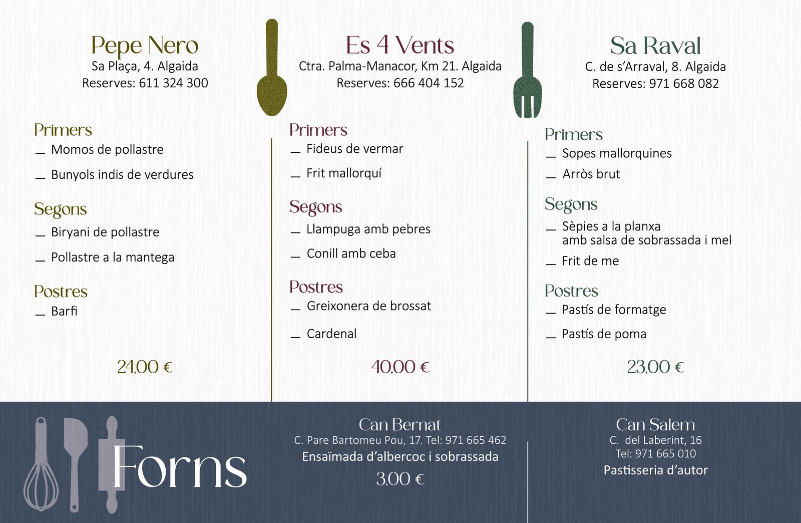 Restaurants i bars d’Algaida, Randa i Cura amb menús especials. Els forns del poble participen amb les coques i dolços més típics.