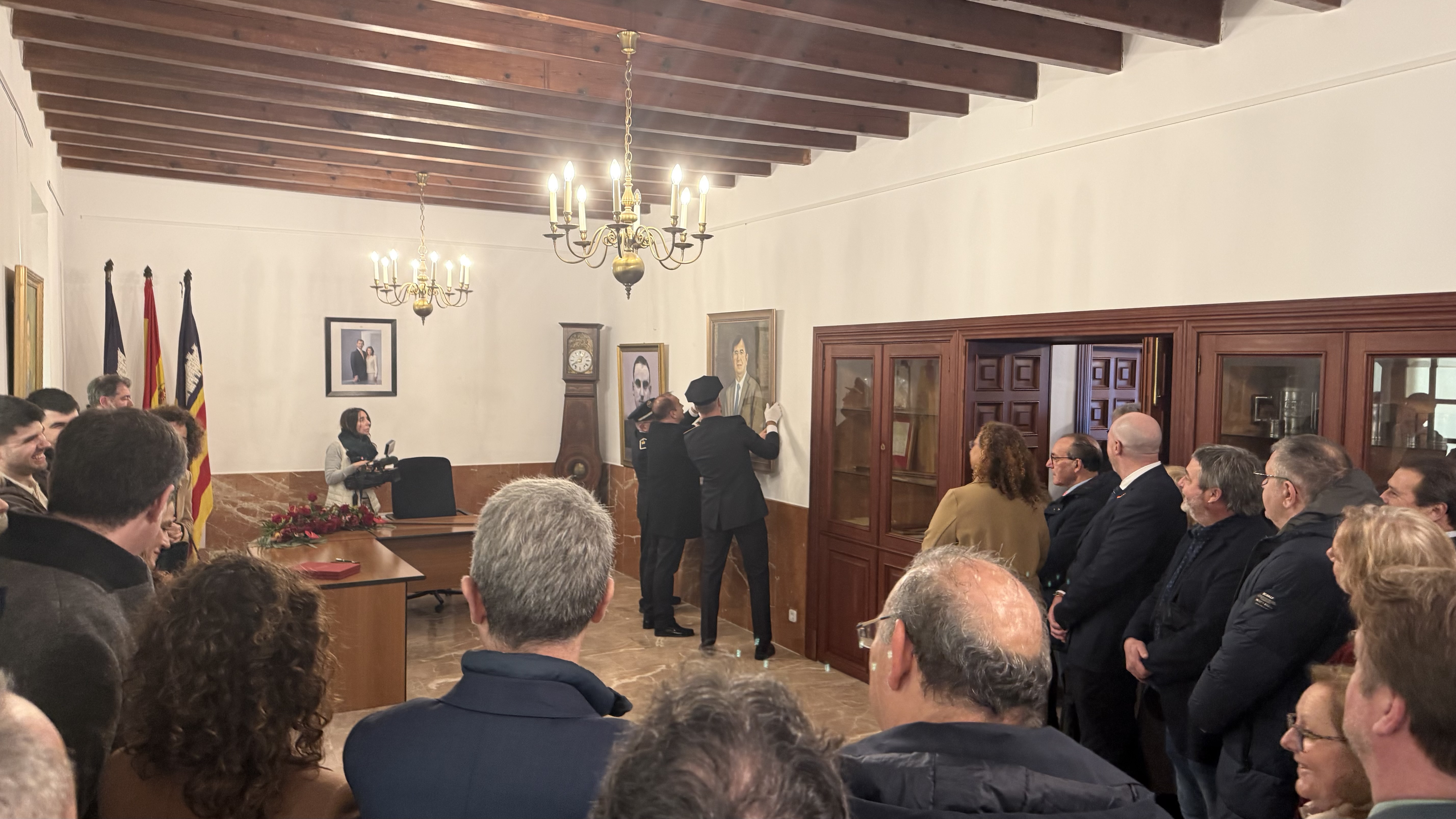 El retrat de Francesc Antich Oliver romandrà a la sala de plens de la casa consistorial, acompanyant altres figures destacades del municipi d’Algaida, com a reconeixement permanent a la seva figura i al seu vincle amb el municipi.
