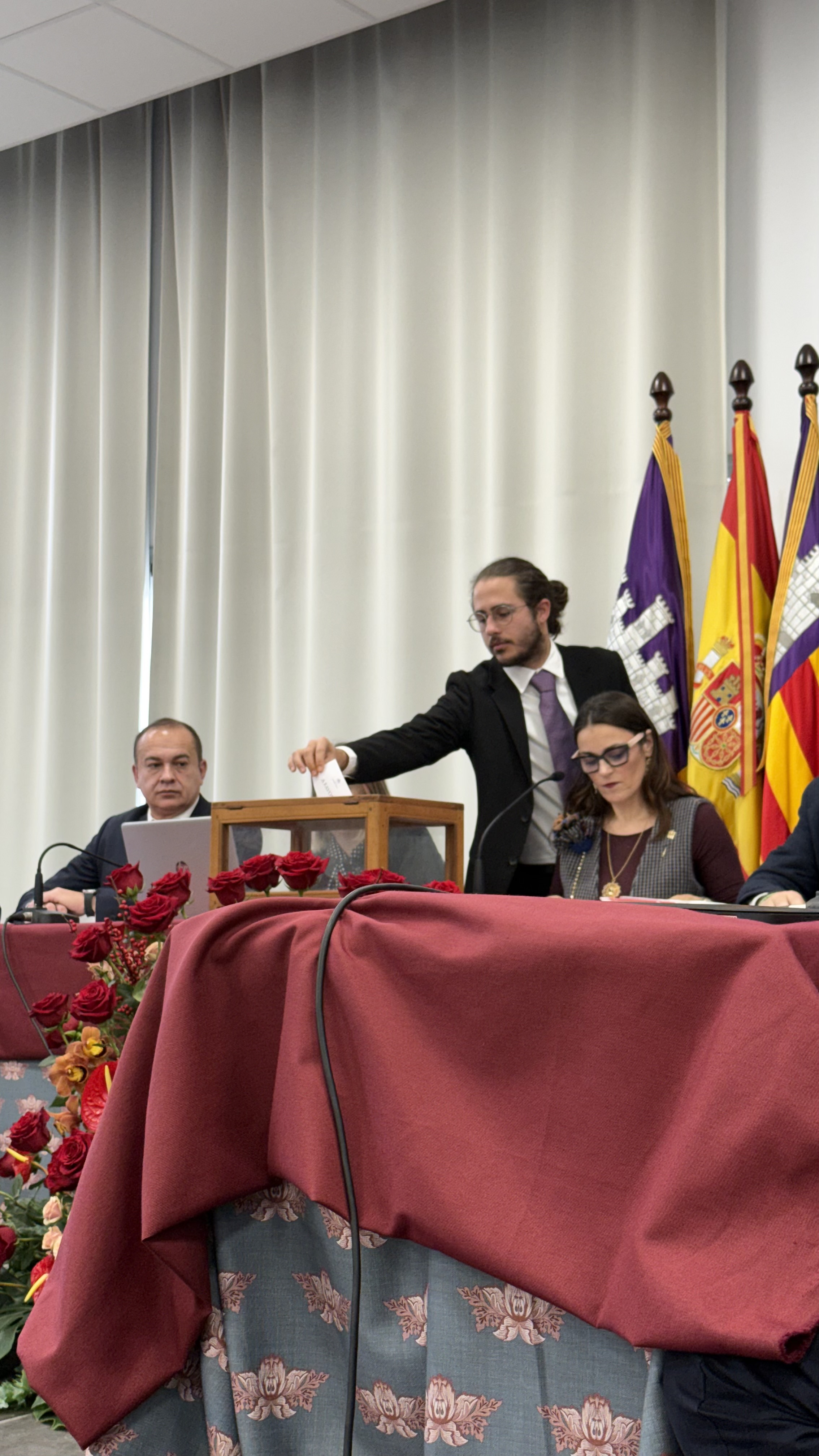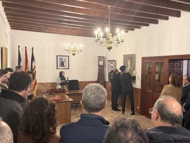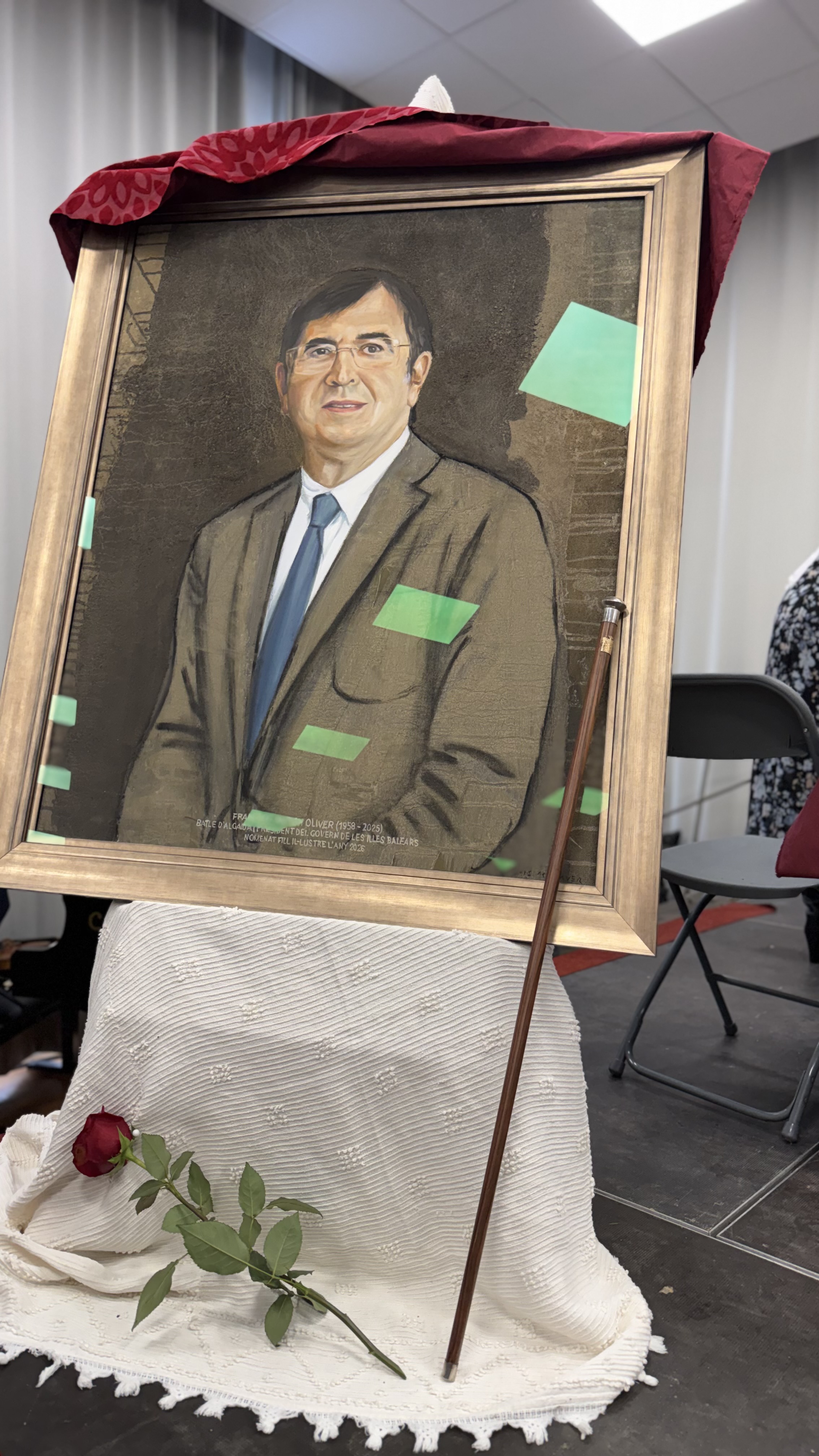 Un dels moments més simbòlics de l’acte ha estat quan Francina Armengol ha dipositat la vara de batle devora el retrat de Francesc Antich, en un gest carregat de significat institucional i emocional.