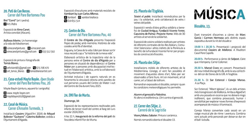 Els carrers d’Algaida es tornaran a omplir de cultura, art i creativitat els dies 13 i 14 de setembre.