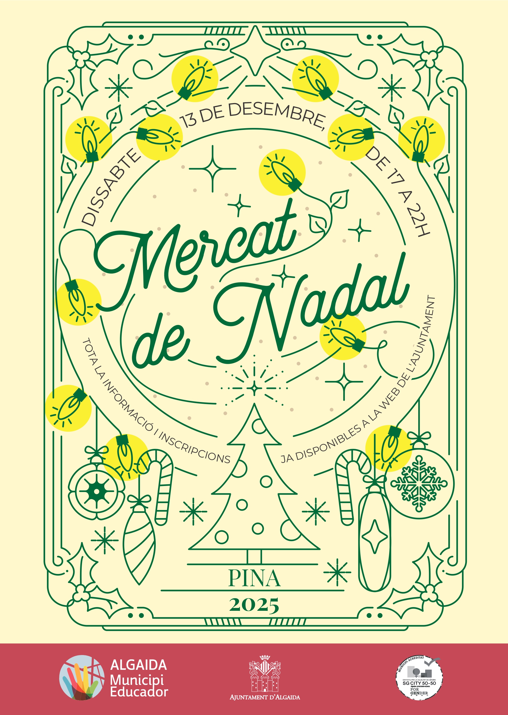 El pròxim 13 de desembre es realitzarà el tradicional mercat de Nadal de Pina. Si estàs interessat/da en participar amb una paradeta, tens fins dia 2 de desembre per presentar la teva sol·licitud (emplenada d'acord a l'annex 1) mitjançant una instància general per registre d'entrada.