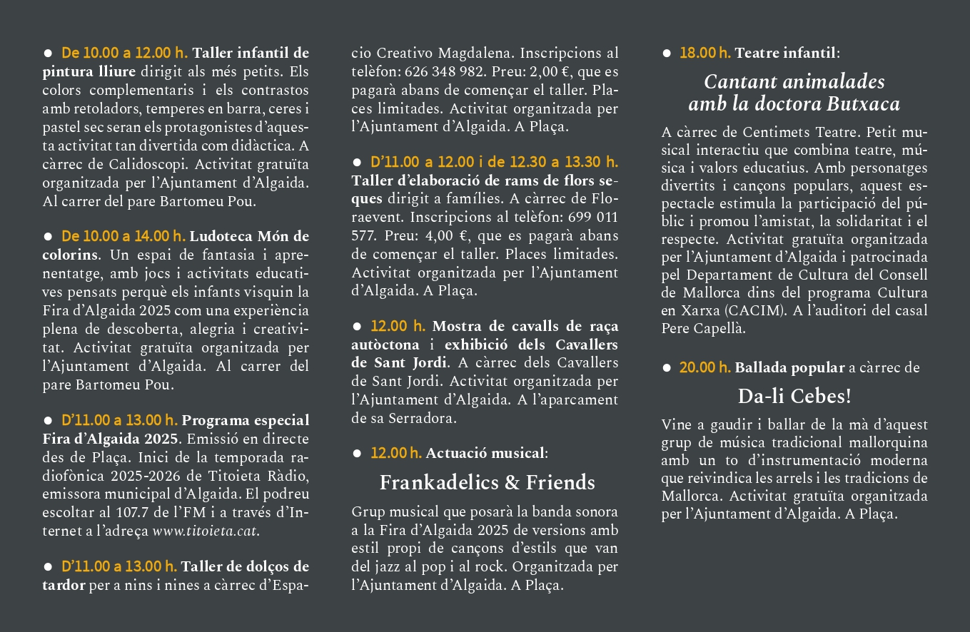 Algaida es prepara per celebrar la Fira d’Algaida 2025 el pròxim 11 d’octubre amb un ampli programa d’activitats que omplirà de vida els carrers i places del municipi.