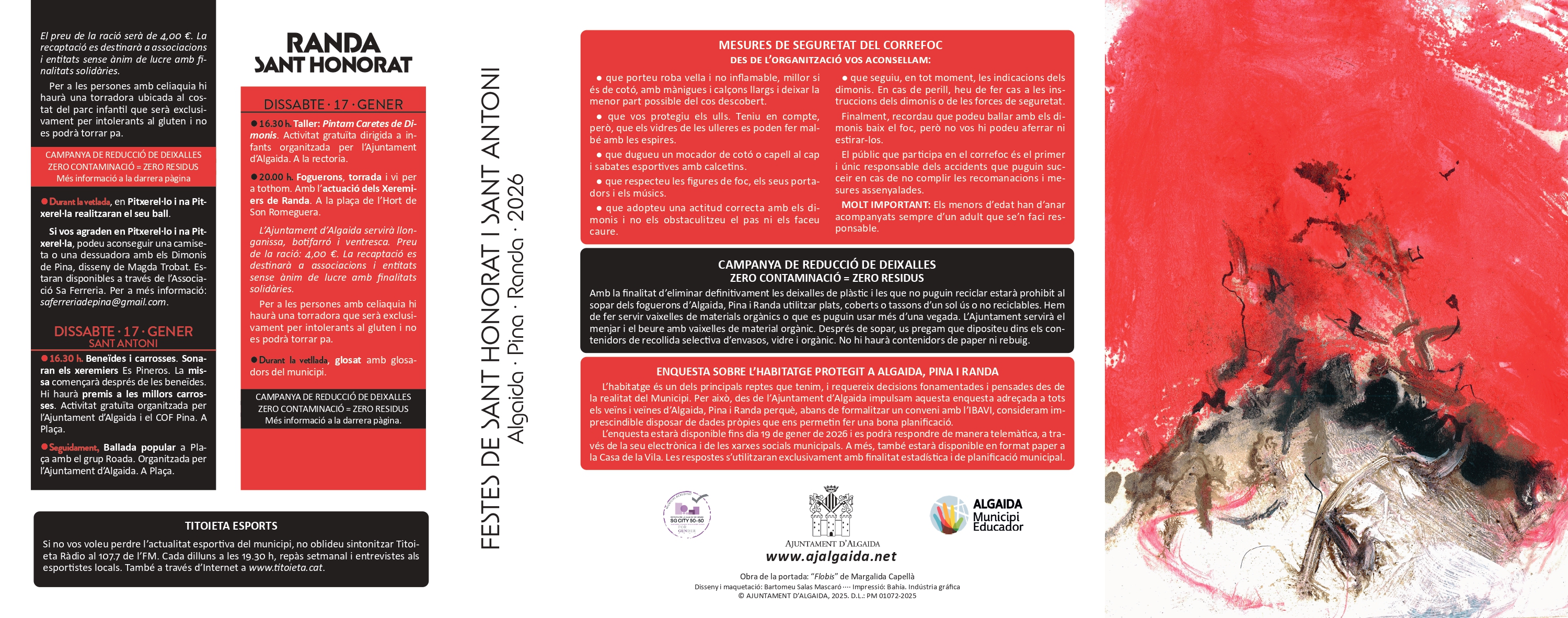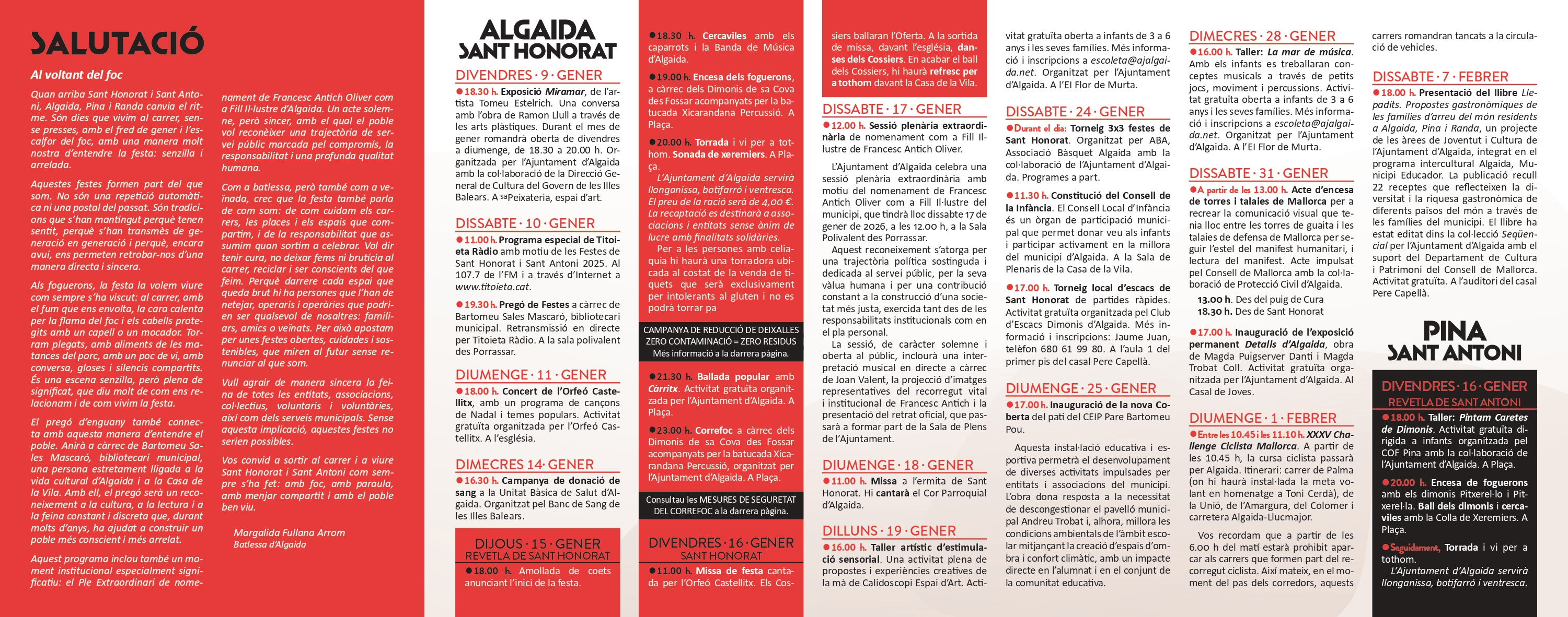 Ja teniu disponible el programa de festes amb les activitats que durem a terme amb motiu del patró de Sant Honorat i de la tradicional festa de Sant Antoni.Consulta el calendari aquí.