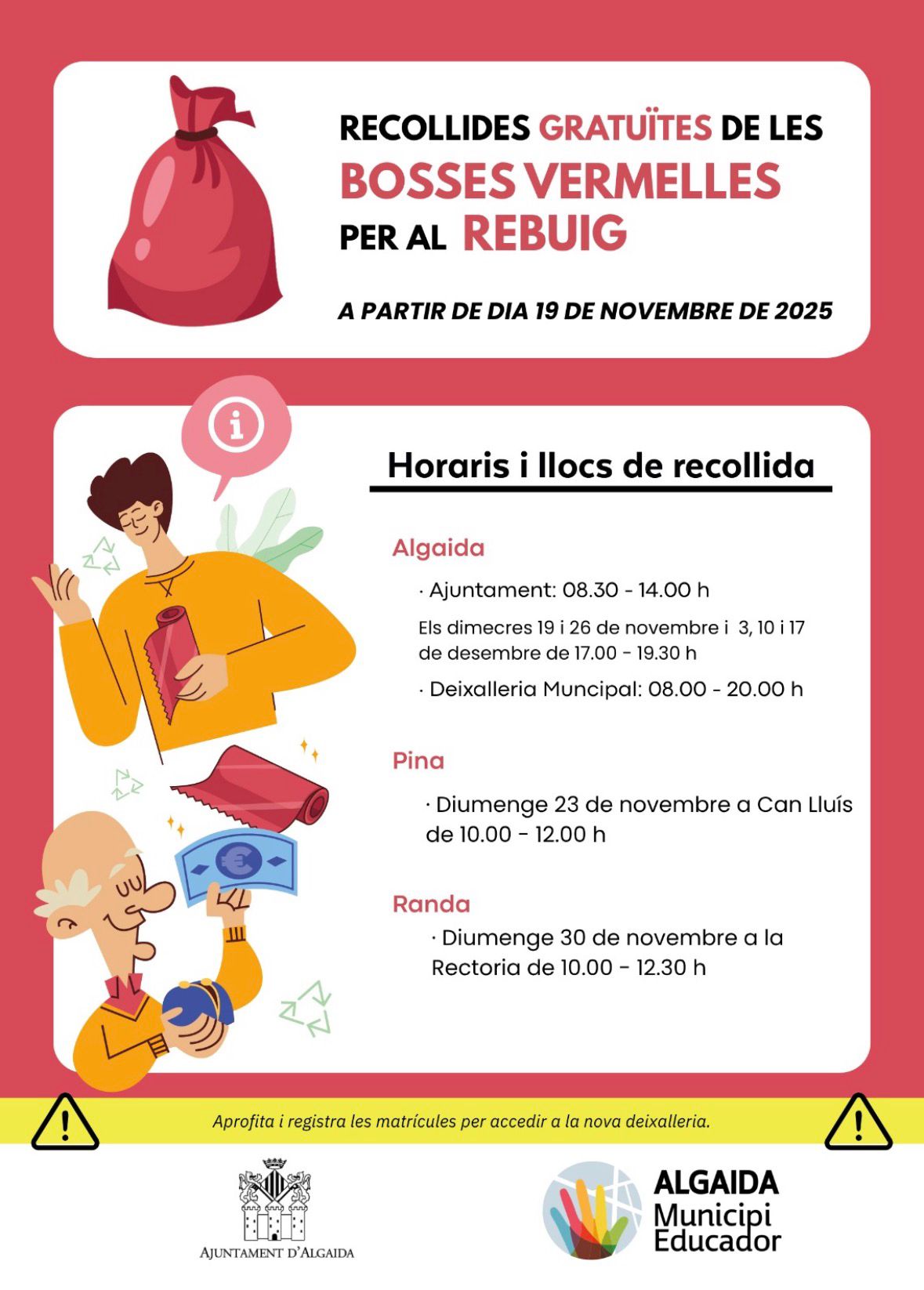 A partir del 19 de novembre de 2025, ja podeu passar a recollir les bosses vermelles als punts habilitats d’Algaida, Pina i Randa.