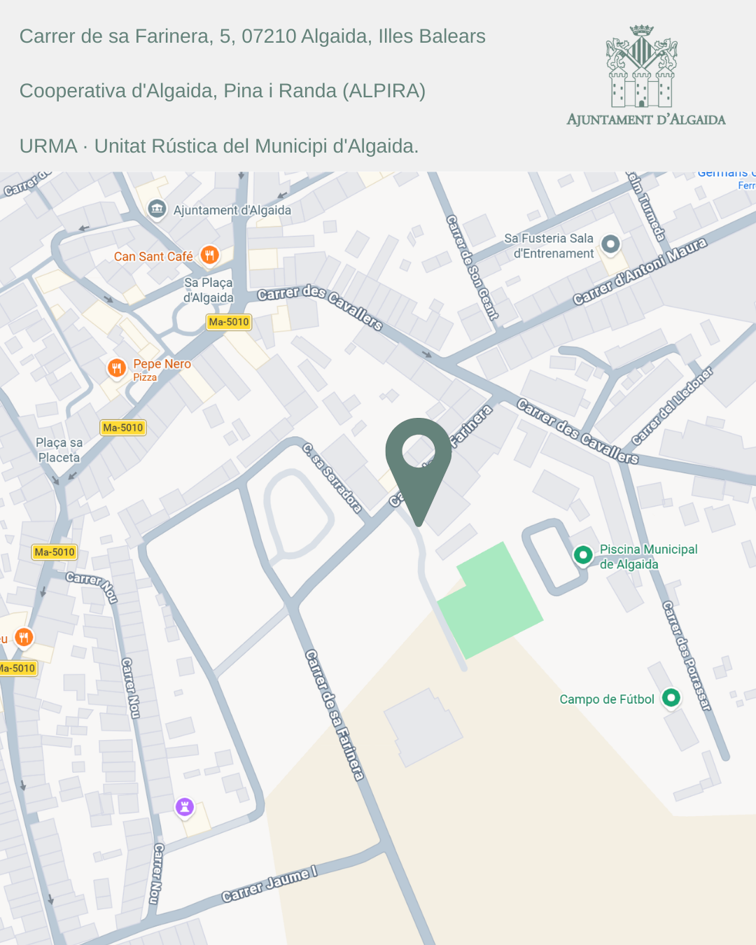 - Carrer de sa Farinera, 5 (Cooperativa d’Algaida, Pina i Randa – ALPIRA)