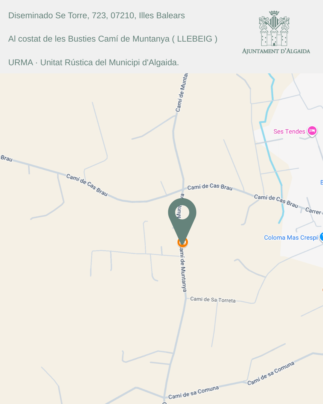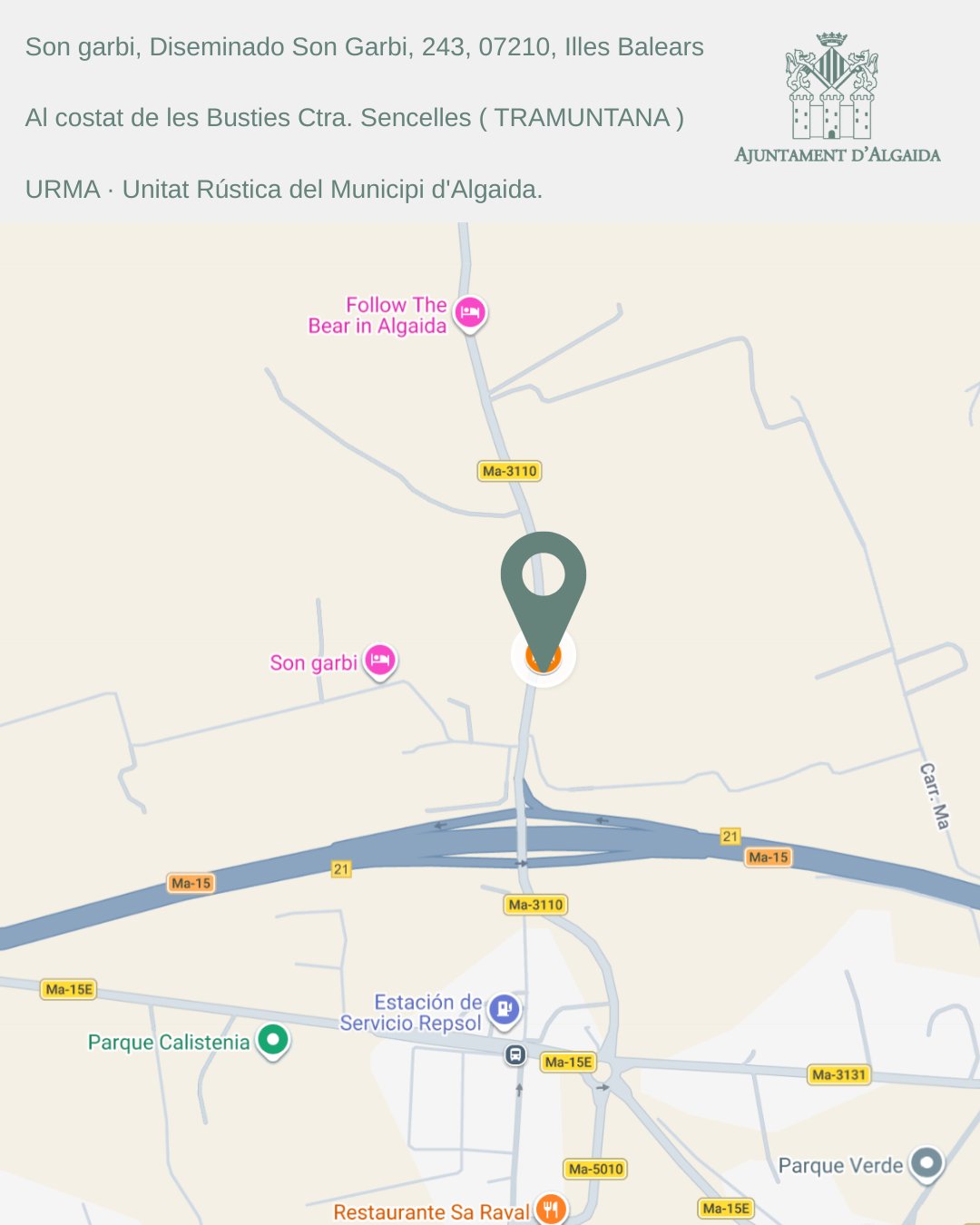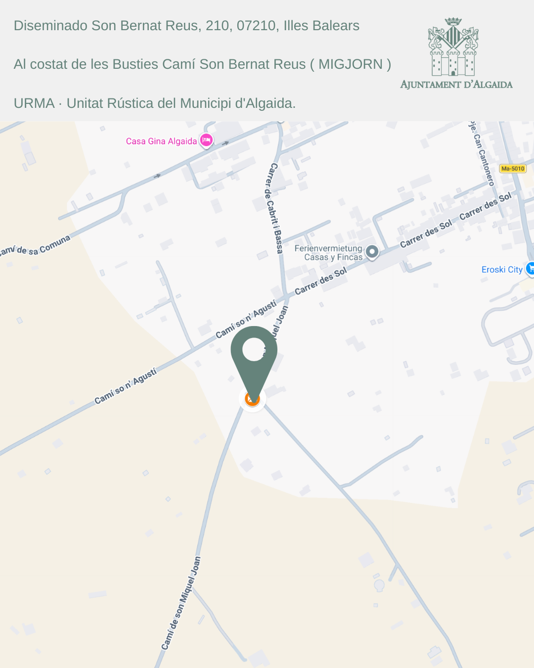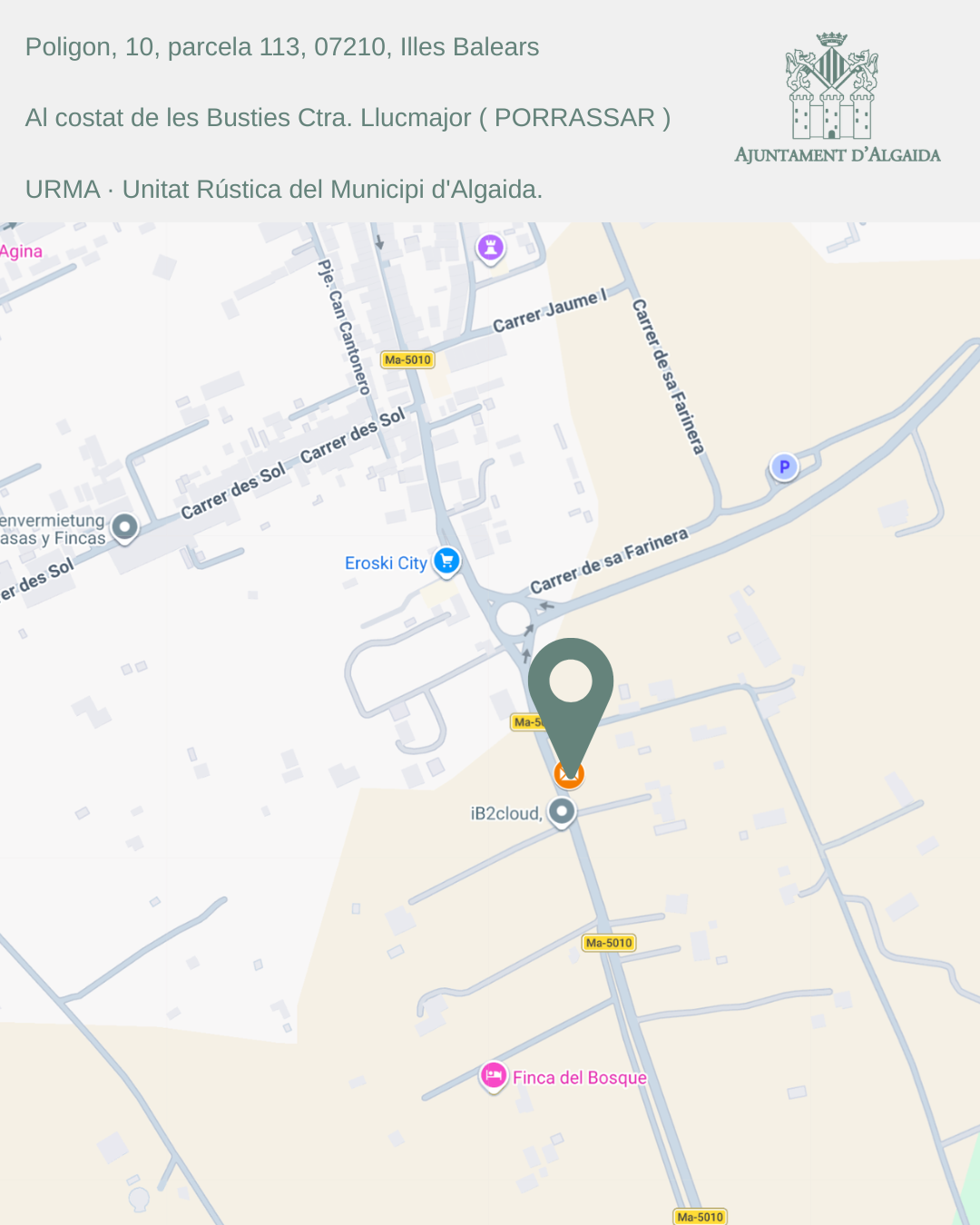 - Polígon 10, parcel·la 113 (al costat de les bústies Ctra. Llucmajor – Porrassar)