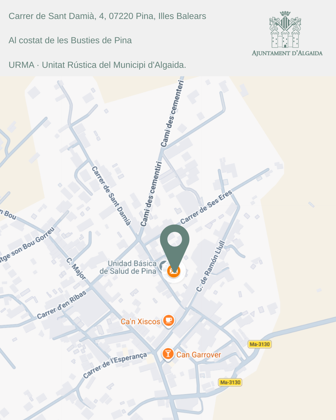 L’Ajuntament d’Algaida ha completat la instal·lació dels cartells informatius d’URMA a diversos punts del municipi (Algaida, Pina i Randa) i informa que el telèfon de comunicació ja és operatiu. Aquesta actuació consolida la posada en marxa d’URMA (Unitat Rústica del Municipi d’Algaida) com a eina per detectar, registrar i resoldre incidències al sòl rústic i a les zones de fora vila.