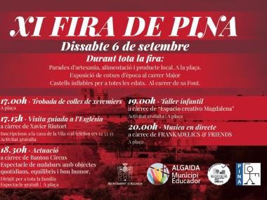 El proper dissabte 6 de setembre, Pina es vestirà de festa amb la celebració de la XI edició de la Fira de Pina, una jornada que combina tradició, cultura, producte local i activitats familiars.